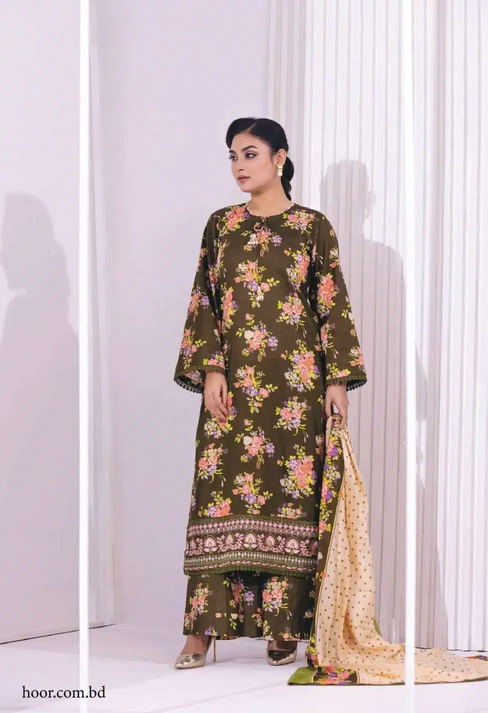 Beautifully Printed Lawn Shirt, perfectly paired with a matching Printed Dupatta and Printed Trouser.
