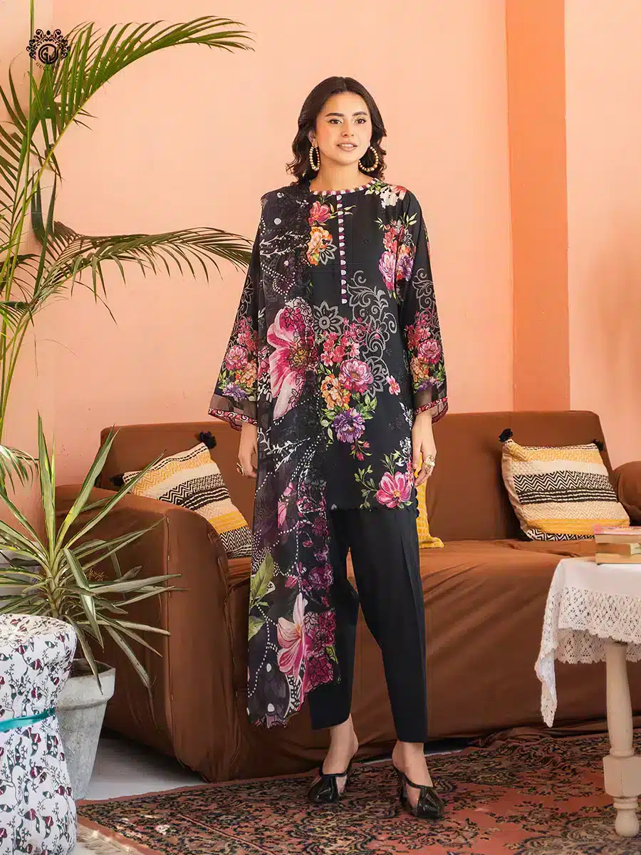 - Front: Digital Printed Stripes Lawn Daman Embroidered