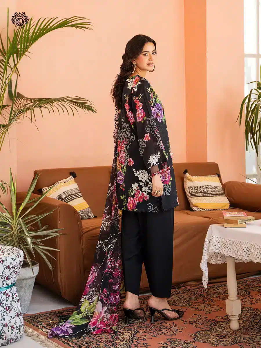 - Duppata: Digital Printed Bamber Chiffon Embroidered Cut-Work